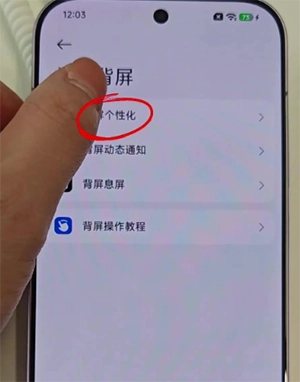 1、打开手机设置,进入妙享背屏,选择背屏个性化,再点击自定义壁纸。