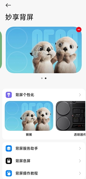 3、进入「妙享背屏 - 背屏个性化」,选择图片、GIF 或主题内容,设置壁纸与签名。