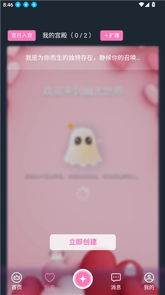 3、进入"后宫"模块可自定义创建特色角色