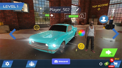 玩家首先要挑选自己的角色外观和想驾驶的车辆,接着点击画面右下角的绿色箭头按钮,进入模式选择界面。
