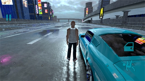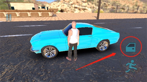 在单人模式中,玩家一开始会以第三人称视角操控角色移动,当玩家角色靠近自己的车辆时,点击车门按钮就能进入驾驶状态。