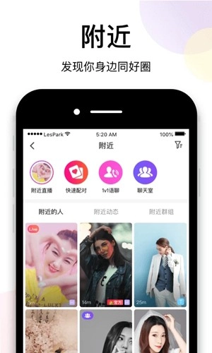 附近用户:精准定位功能帮助用户发现周边优质用户,一键开启线下社交可能。