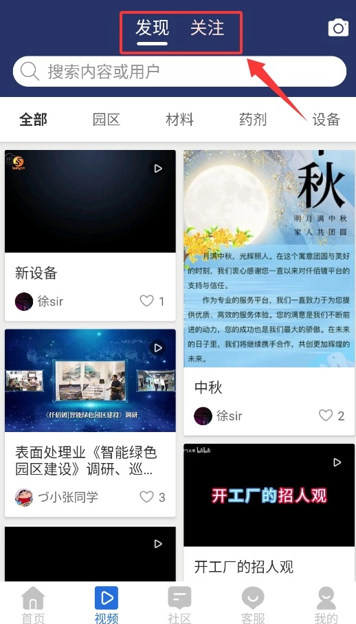 视频界面支持浏览发现页的推荐内容,也能查看已关注账号的视频动态。