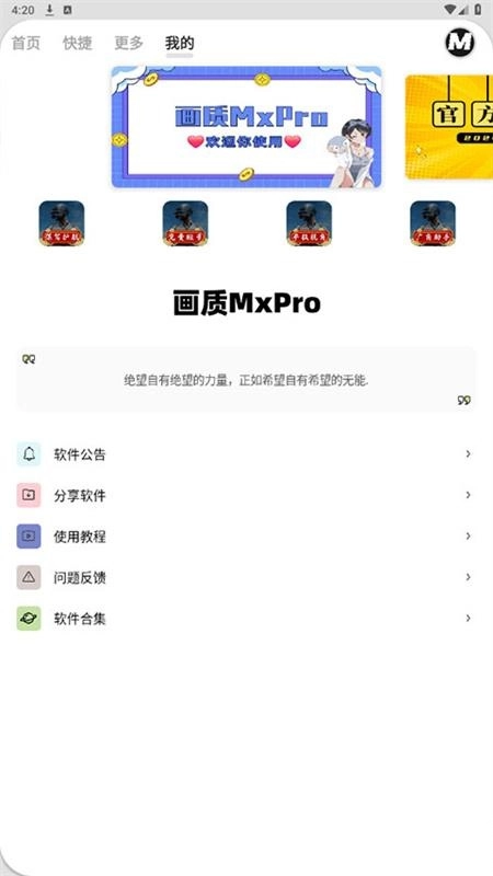 画质mxpro采用先进的智能优化技术自动识别游戏场景和画面特点进行针对性优化以提升画质并确保游戏流畅稳定,提供高清、流畅、省电等多种优化模式供用户选择,支持用户调整画面亮度、对比度、饱和度等参数进行个性化设置,且界面简洁明了、操作简单方便。