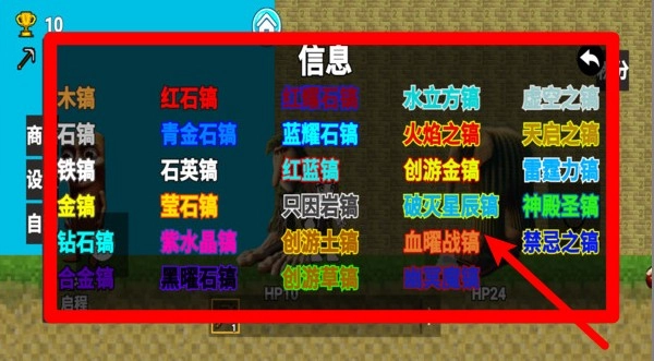 点击界面右上方的“信息”按钮,就能查看各类锄头的类型及属性名称,像普通锄、元素锄和特殊合成锄等相关说明都包含在内。