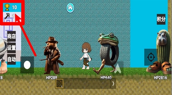 画面左上角会显示当前拥有的奖杯数量和锄头等级,玩家可以通过击败敌人来积累资源,进而提升锄头等级,解锁更多具备进阶功能的锄头。