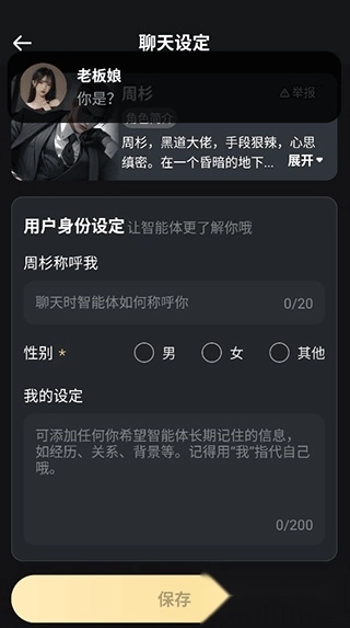 3、在聊天过程中还可以对自己的人设随时进行调整,让ai角色更加能了解你