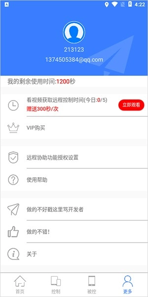 被控功能的使用方法是:当你需要他人协助时,只需将被控状态下的连接码提供给对方,对方就能通过该连接码远程连接你的手机。