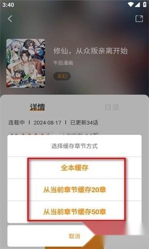 若想离线观看,可点击【开始阅读】旁边的【】按钮,按照提示选择缓存画质或章节范围,操作便捷且十分人性化。