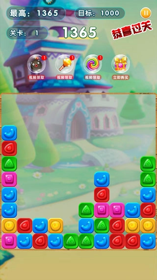 1、每一关都有各种不同的方块和糖果。玩家需要消除三个极三的方块,这样会让游戏更有趣。