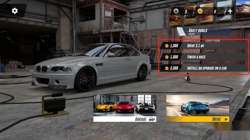 6、现在就着手完成日常任务吧,第一个任务很简单,开车时达到指定数值就能完成;第二个任务是完成一场比赛,玩家需要把车开到下图所示的位置。
