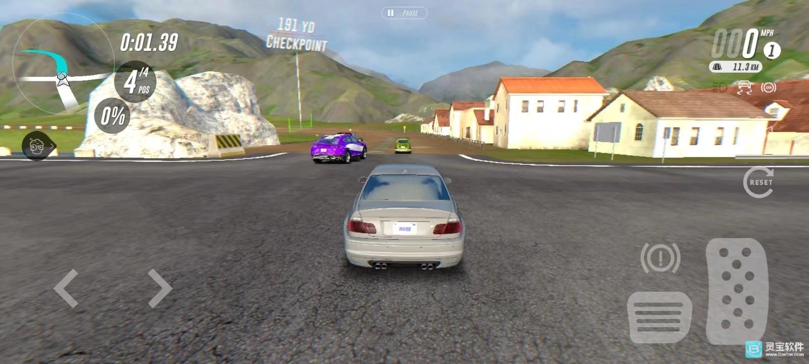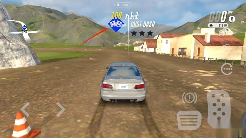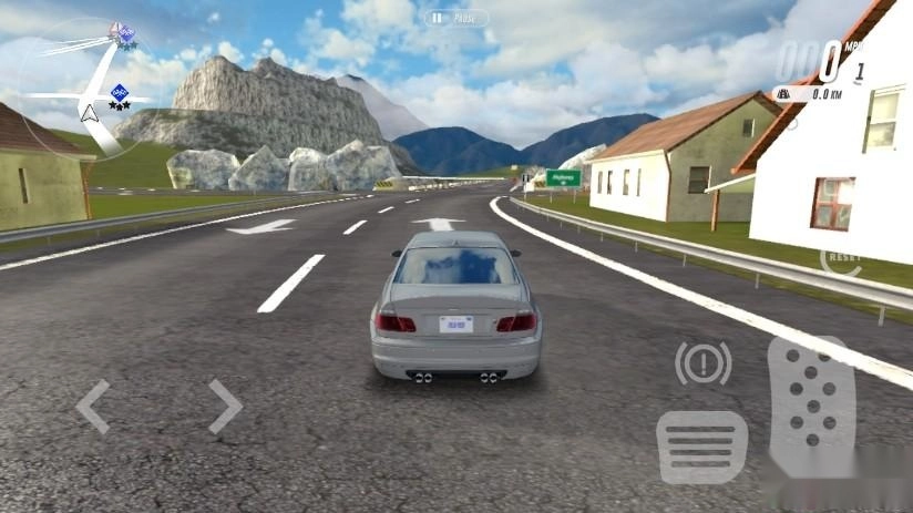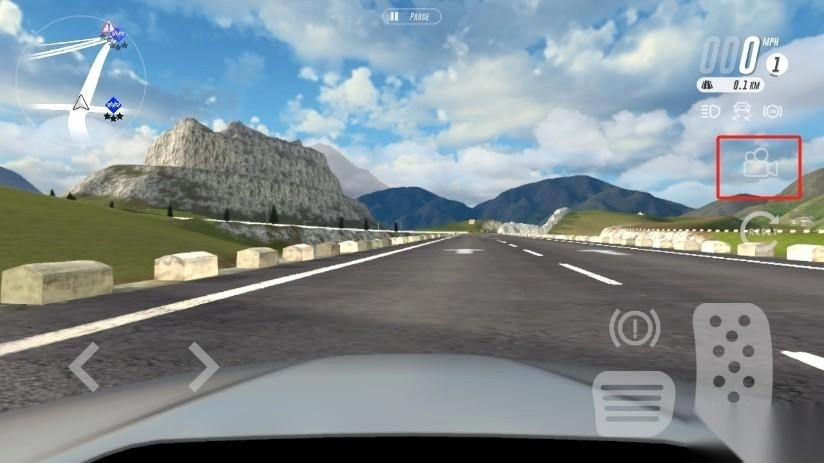 4、点击【DRIVE】按钮,即可正式进入游戏。左侧按钮用于控制车辆左右移动,右侧按钮则负责油门和刹车操作;左上角能查看附近的道路地形,右上角可显示当前车速。