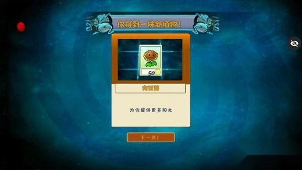 5、将所有僵尸击败后就通过此关卡,并解锁新的植物