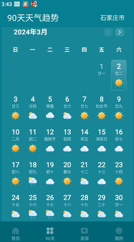90日天气趋势:我们提供90日天气趋势查询功能,助您提前掌握未来天气变化,让出行安排更从容,告别天气困扰。