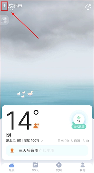 要是你有短期旅游或出差的需求,可以打开最美天气APP,点击页面上方的【+】号,选择想要查询天气的城市。