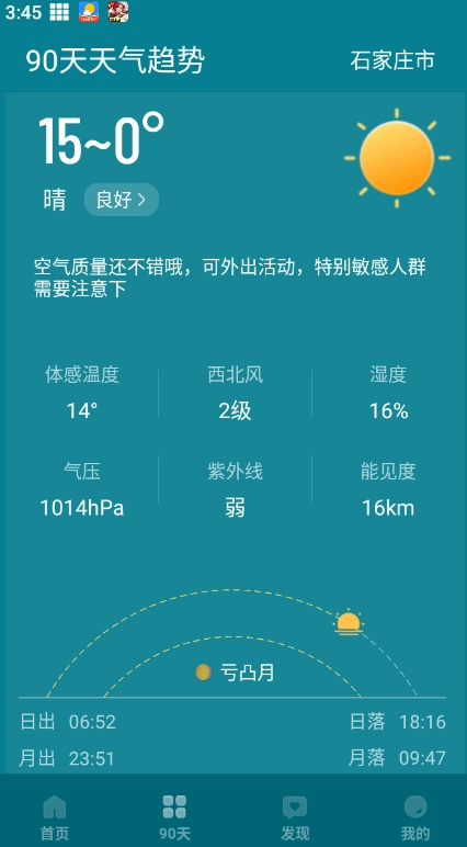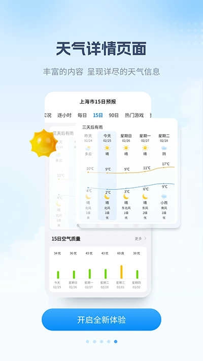 空气质量:提供实时监测数据,同时预报PM2.5数值与AQI指数,我们不仅关注天气变化,更在意您的健康生活品质。