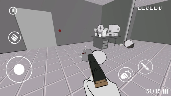 2、游戏采用第一人称视角,左侧轮盘控制角色移动;