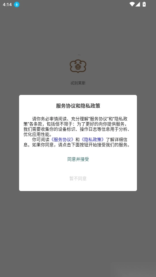 打开软件后,阅读“服务协议和隐私政策”,随后点击“同意并接受”按钮即可进入。