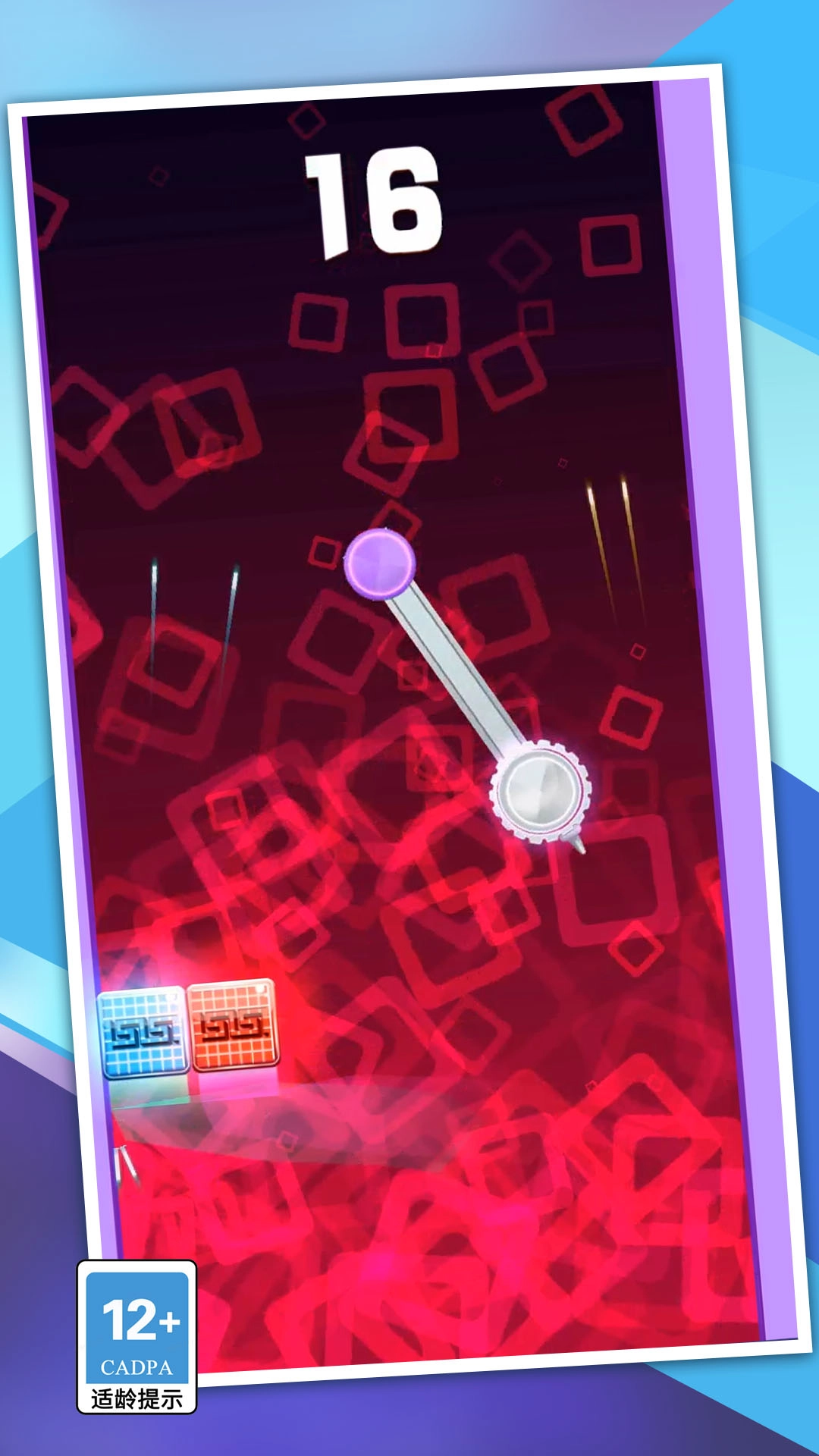 玩家需要帮助画面里的红蓝两个方块避开迎面而来的各类障碍物。点击屏幕时,两侧的方块会朝着你点击的地方靠拢,以此来躲避障碍物。