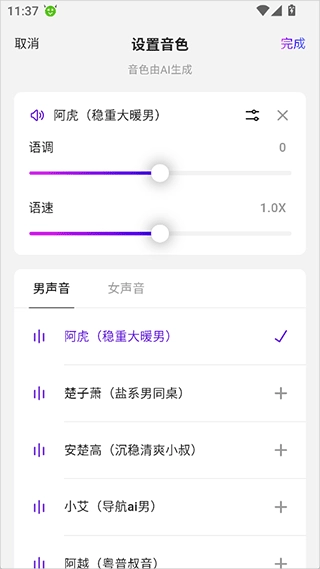 2、从基础音色库中选择初始语音特质