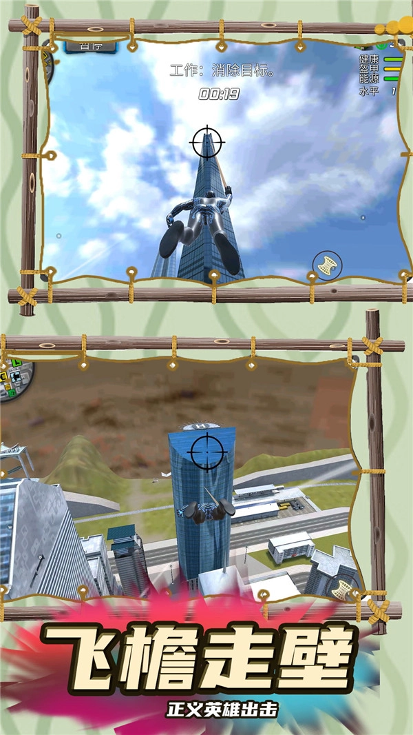 在城市高楼间展开高空追击冒险,精准锁定敌人弱点,尽情体验追捕反派的刺激感。