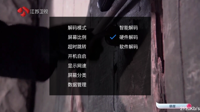 按住屏幕停留几秒会弹出解码模式、屏幕比例等设置