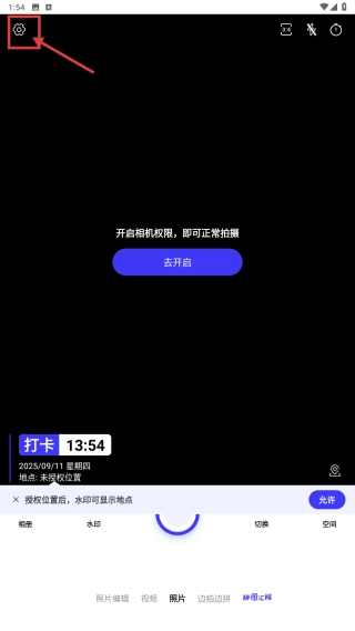 打开拍照类应用,点击界面左上角的设置图标,进入设置相关页面。