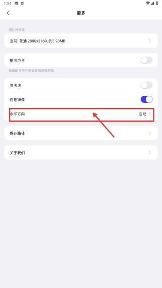 在更多设置页面,找到水印方向选项并点击,即可进入水印方向的设置界面。