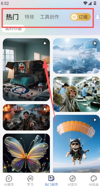 针对用户对特效工具创作的需求,热门创作板块提供了丰富的免费模板,大家可以自由选择配置并预览效果,尽情感受AI带来的别样精彩体验。