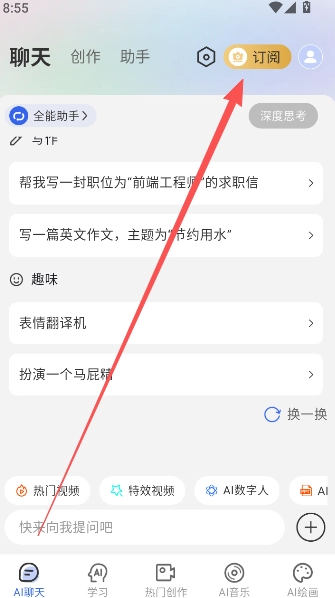 全能AI智能助手的永久会员权益,您可以点击软件右上方的订阅选项进行查看。