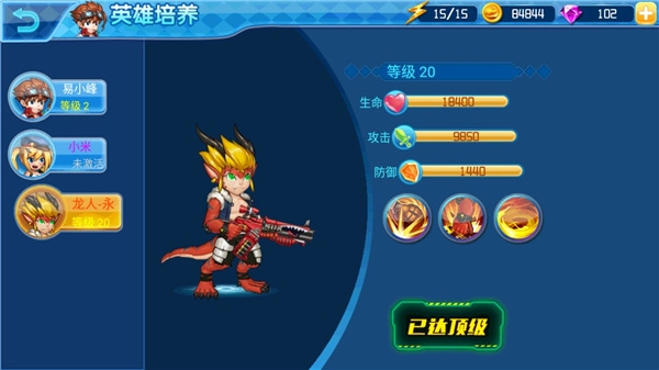 这款游戏里有易小峰、小米和龙人这三种不同的人物角色,他们各自的战斗力与技能都有所区别。不过玩家能够通过对这些角色进行升级和强化,来增强他们的战斗力。