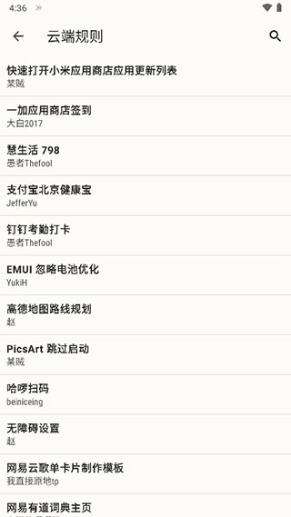 大家点右下角加号,进入云端规则,里面都是广大网友贡献的规则。至于扫码合集,就是支付宝、微信等软件,扫一扫、收付款相关内容。比如长按微信二维码名片,再点右下角勾子,就能把它添加到主页。