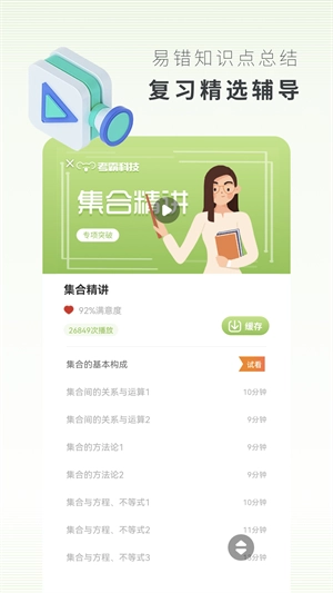 高中数学这款学习辅助软件,整合了高中阶段所有数学教材的内容,还收录了全面的高中数学公式大全。你可以在这里查阅各类公式,并学会灵活运用它们。软件操作简便,按照章节划分进行学习能让效率更高!