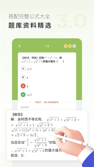 围绕三大题型开展实战模拟训练,科学规划同学们的课后时间,引导大家利用碎片化时段进行学习,助力大家珍惜青春年华与复习时光,有效减轻孩子们的课后压力,通过寓教于乐的方式,打造能让学习更轻松的智能做题工具!