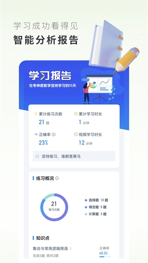 游戏化的闯关玩法会来测试你的学习效率到底怎么样哦~智能监督你的学习,让你的效率越来越高!