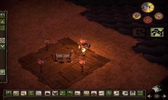 ·进入游戏第一件事就是在白天疯狂采集果酱萝卜,稻草,树枝与碎石,以及探索地图,准备12朵花,四天内必须找到适合的地方安营扎寨,最好找到猪王和猪村附近建立据点!