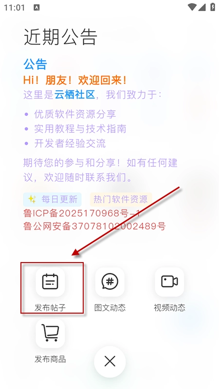 点击页面上的“+”按钮,接着选择发布帖子或者图文动态,编辑好内容后进行发布,以此和其他用户分享。