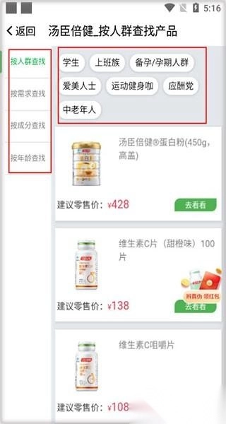 4、这里有丰富多样的产品,您可以按照人群、需求(如学生等)进行分类查找。