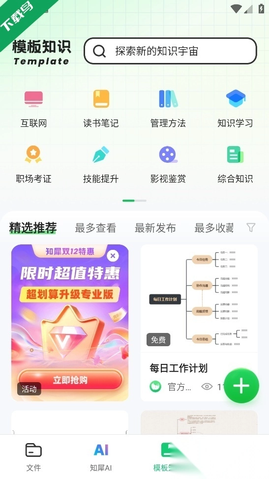 进入主界面后,能看到知识学习、读书笔记等多个分类。