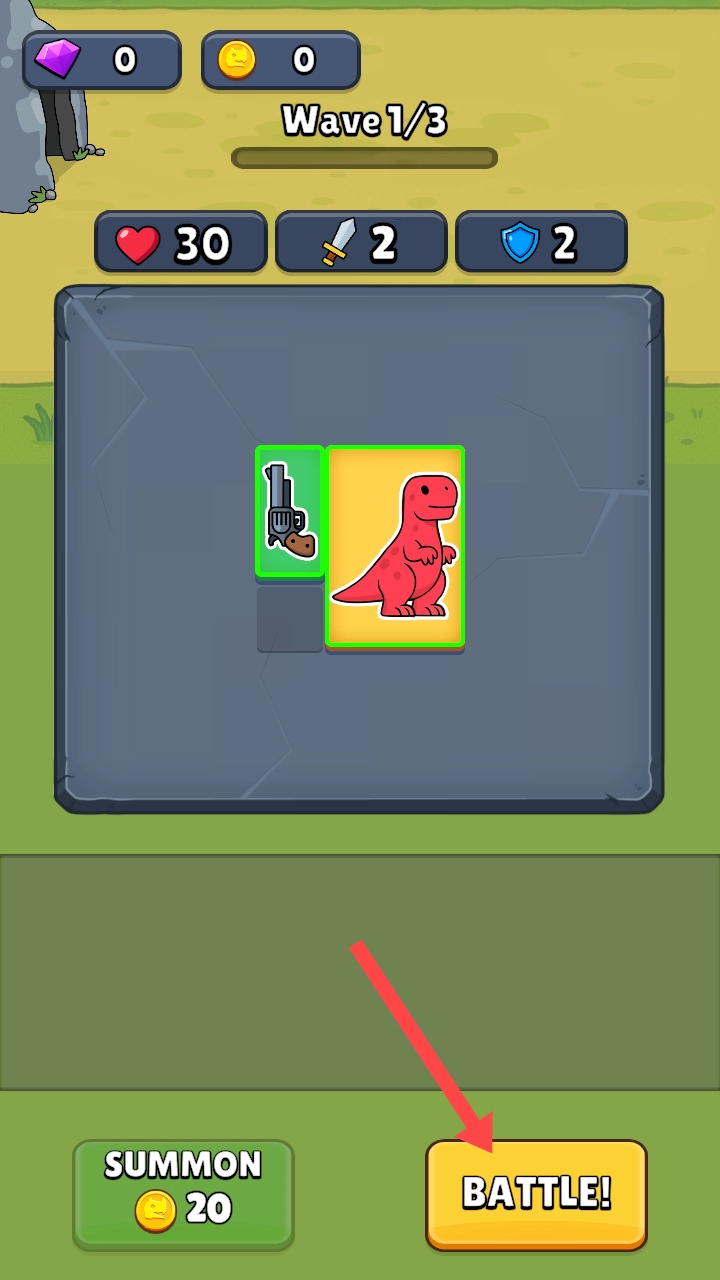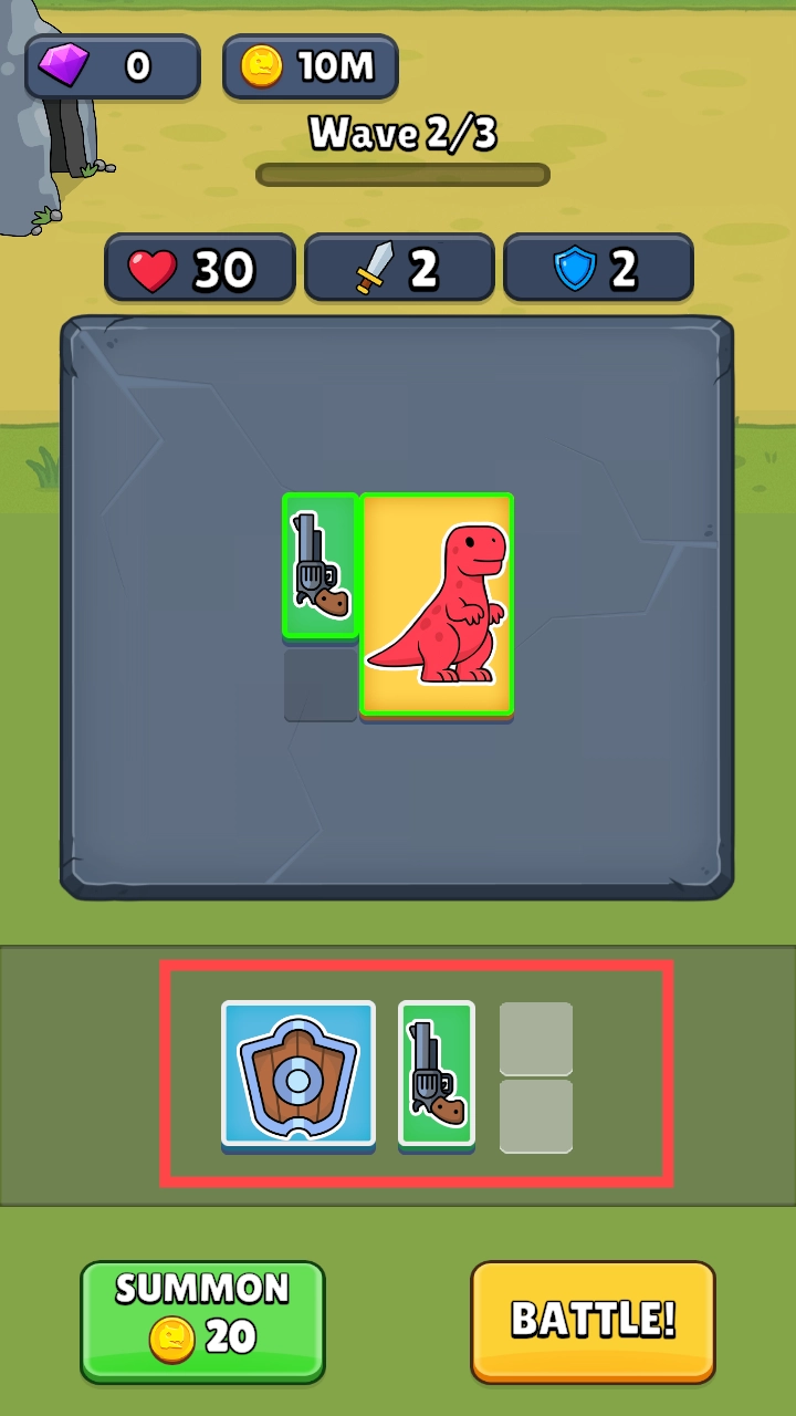 4、每波战斗结束后,会获得新的卡牌,合理利用新卡牌,调整布阵,然后再次点击【BATTLE!】按钮,迎接下一波敌人。