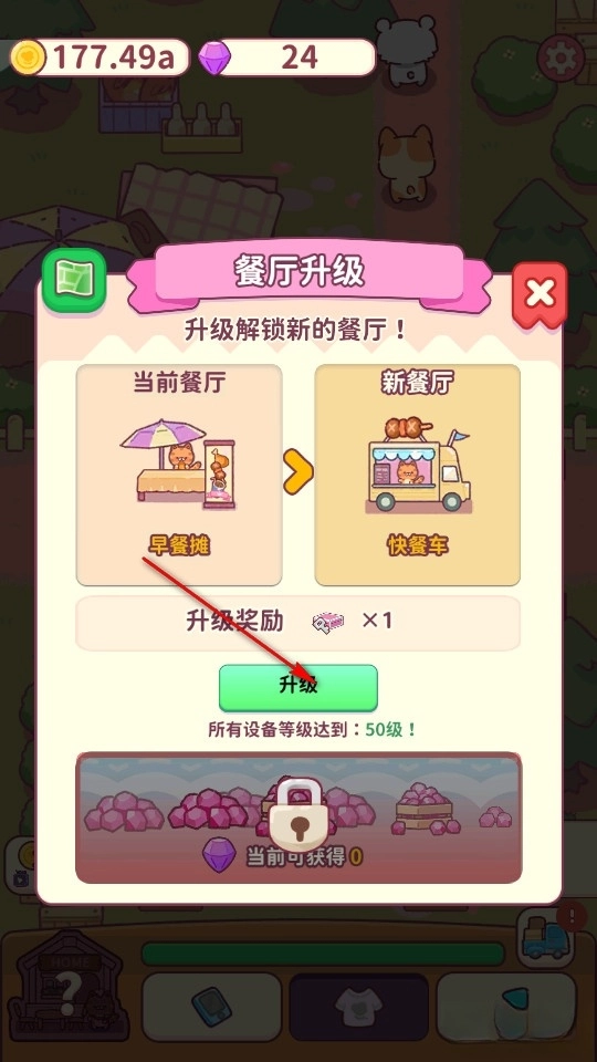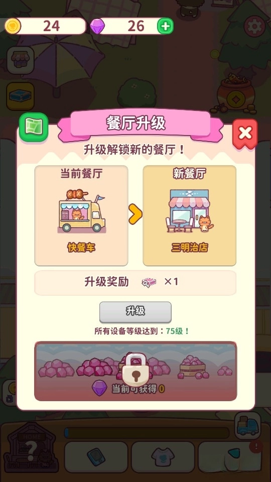 当我们这家店的所有事物都升级到满级以后,我们就能够解锁并进入下一个关卡了。