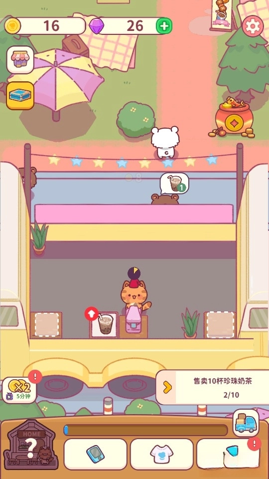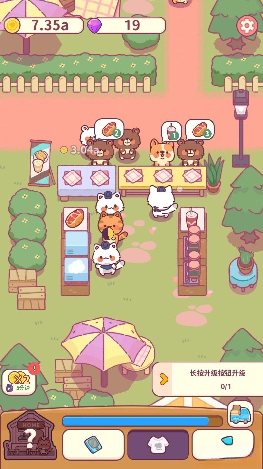 我们要协助猫咪打理门店,通过售卖美食来赚取金币,玩家得持续升级食物的制作方式,再把做好的食物提供给顾客。