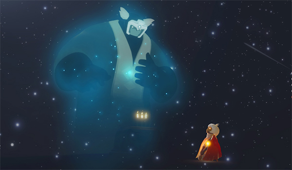 3、找到黄色人影,与它们互动 收集“光之翼”,我们的 飞行技能就可以得到 升级――斗篷背后 星星的数量就代表我们的飞行级别。