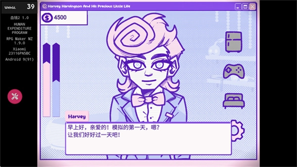 2、点击即可进行喂食操作,若没有钱,可通过玩“打哈维”游戏来获取。