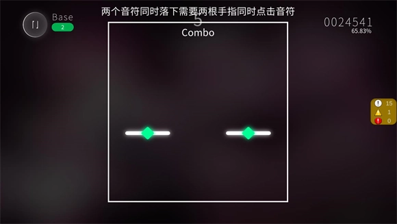 4、进入游戏如图,玩家需在音符接触到判断线后点击;