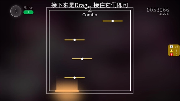 4、Drag音符:当音符滑动至判定区域时,需精准接住并跟随其轨迹移动,增加操作动态性。