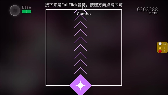 5、FullFlick音符:按屏幕指定方向快速滑动,如上下左右或斜向,带来更灵动的节奏挑战。