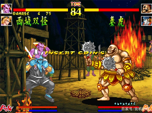 1、操作采用八方向摇杆搭配四个按键,其中拳和脚各设两个,分轻重两类,A至D依次对应轻斩、轻腿、重斩、重腿。角色具备突进、疾退、二段跳等动作,A+B组合键为闪避,B+C组合键为小跳攻击技。