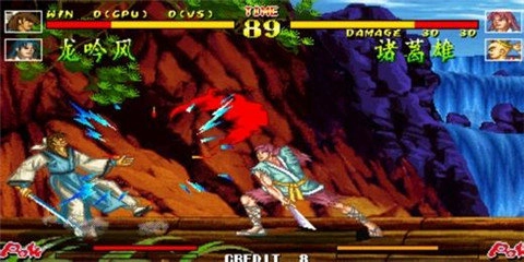 《傲剑狂刀》(The Killing Blade)手机版作为复古街机风格武侠格斗游戏,通过还原单机闯关、人机对战模式及八方向摇杆+A-D轻斩/轻腿/重斩/重腿按键布局,让玩家操控诸葛雄、司徒翎等7名角色,利用攻击集气(红色气表,通过对方挨打、本方挥空招积累)和防御集气(蓝色气表,通过对方防御成功或按A+C主动集气)机制,在攻击气表满1/2并闪动时按A+D触发换手反击技,气表全满时释放超必杀,新手需优先掌握AB闪避、BC中段攻击,选择诸葛雄、秦虎等容错率高的角色,通关普通难度所有关卡可解锁隐藏BOSS关卡及2套复古武侠皮肤,重复通关还能提升角色熟练度(基础伤害和血量随熟练度增加),以此重温街机格斗乐趣并体验独特的武侠格斗机制。