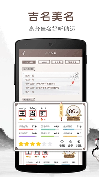随时都能把各类好名字分享到其他社交平台,邀请好友帮忙起名。